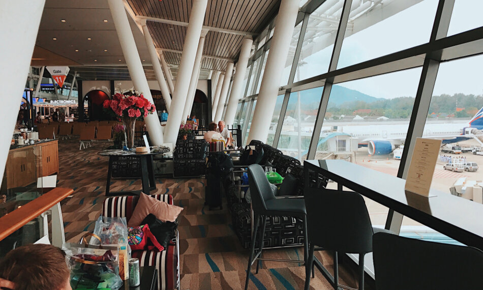 Bevor es in das kleine Warteparadies ging, musste ich das recht seltsame Abfertigungsprozedere am Phuket International Airport durchlaufen. Obwohl ich online eingecheckt hatte und kein Gepäck aufgeben wollte, musste ich dennoch zum Check-In Schalter, da es online leider keinen Boarding Pass gab. Bevor man jedoch an den Check-In Schalter darf, muss man bereits durch eine kleine Sicherheitskontrolle. Diese befindet sich nicht, wie man das z.B. von afrikanischen oder arabischen Airports kennt, am Eingang des Flughafengebäudes, wo jeder durchrennt obwohl es ständig piept und pfeift, sondern unmittelbar vor dem Check-In-Bereich und ist relativ genau, aber vor allem aber auch langsam. Eine separate Kontrolle für First und Business Class Passagiere oder Statuskarteninhaber gibt es nicht und obwohl an dieser Sicherheitskontrolle lediglich die Passagiere für die Frankfurt-Maschine kontrolliert wurden, dauerte es knappe halbe Stunde bis ich meine Bordkarte in den Händen hielt. Anschließend gehts, durch die Ausreise und durch die große Sicherheitskontrolle.